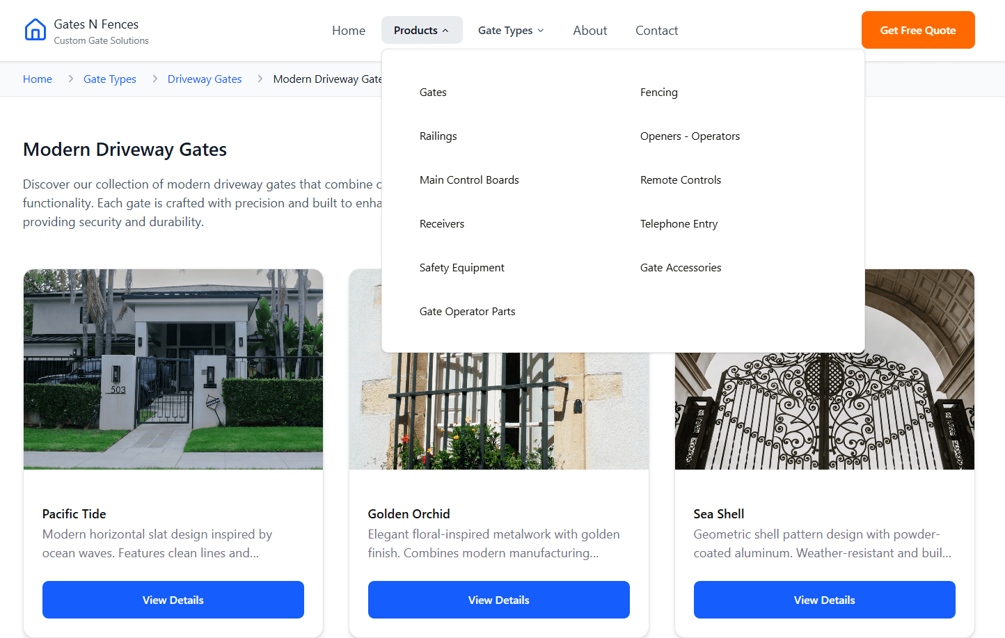 The original Gates & Fences website suffered from poor information architecture, inconsistent design patterns, low accessibility scores, and confusing navigation that led to high bounce rates and abandoned carts.